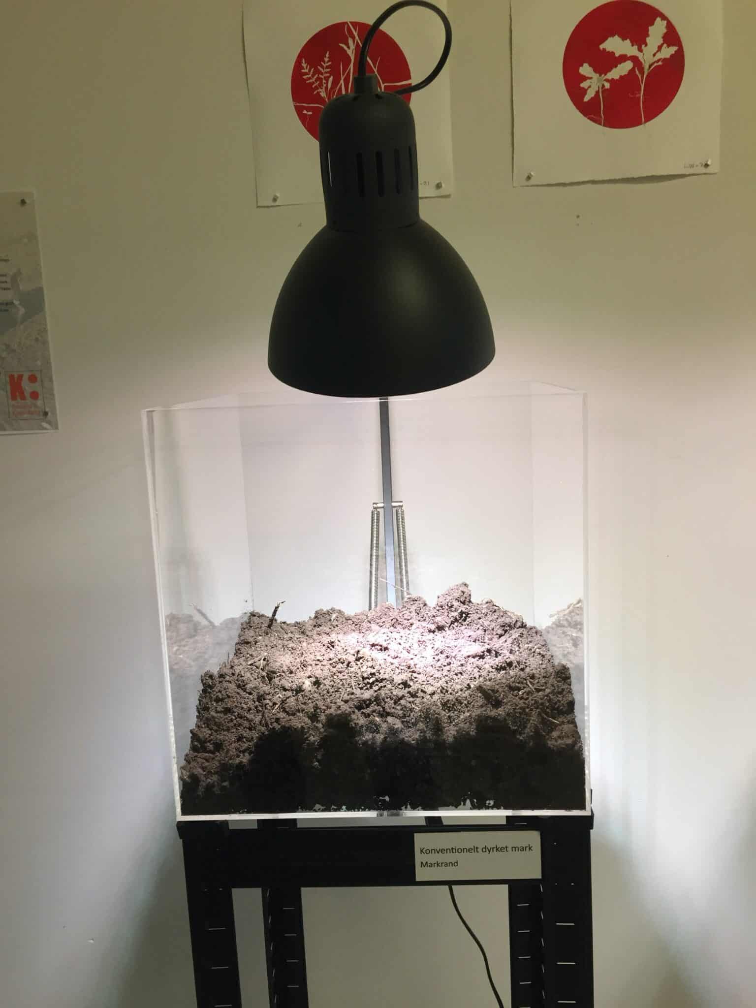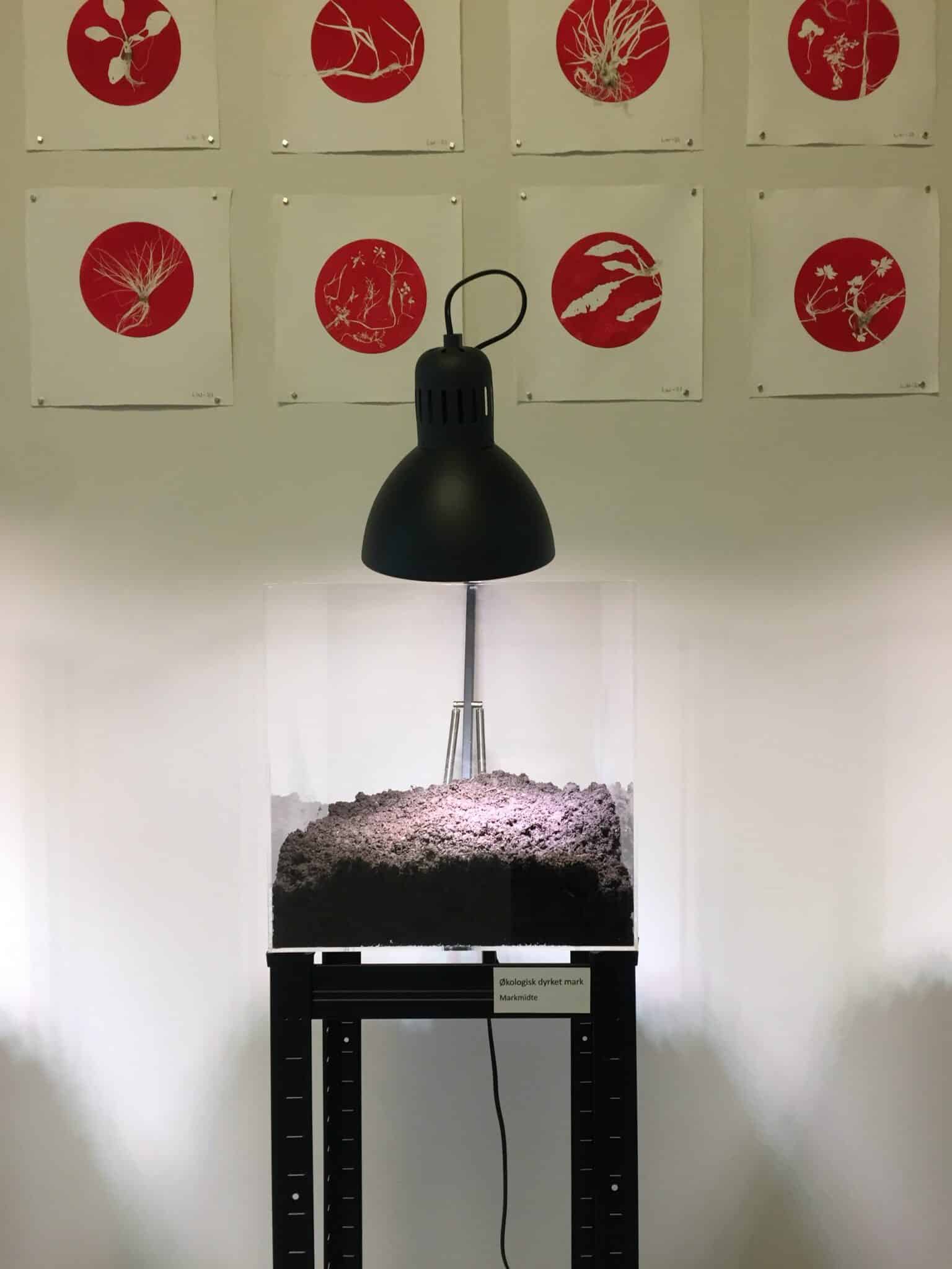 Der er udtaget jordprøver i markranden og markmidten på en økologisk dyrket mark og på en konventionelt dyrket mark. Hver jordprøve består af 5 liter jord. Efter at jorden er udtaget fjernes de planter der er i prøverne. Disse planter er anvendt i de grafiske arbejder. Jordprøverne er herefter nedfrosset i ca. 3 uger