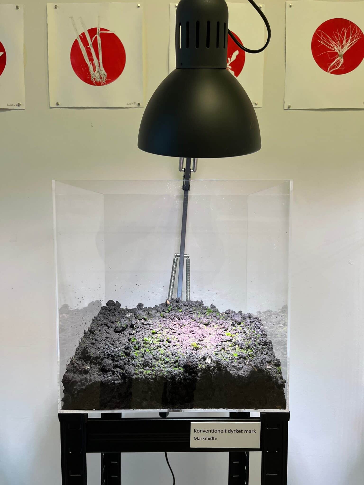 To dage inden opsætningen af udstillingen er jordprøverne taget ud af fryseren. Jorden er herefter anbragt i vækstkasserne og hver kasse er forsynet med en lampe med plantelys. Pasning består herefter i vanding af kasserne med deminiraliseret vand. Denne del varetages af museets personale.