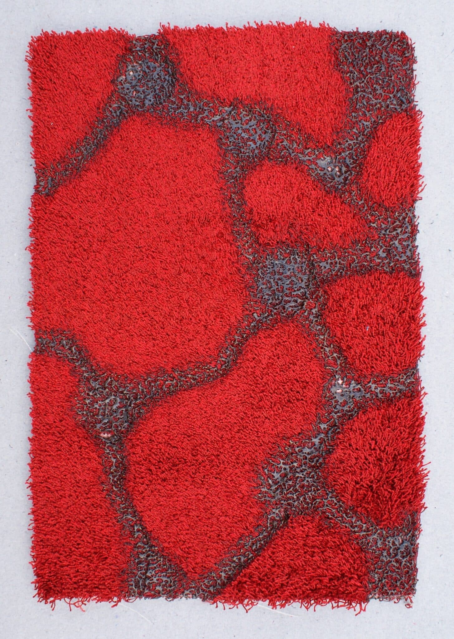 Når man arbejder med kunst er alt i princippet tilladt. Det kan derfor være rigtig gavnligt for proces og værk at sætte nogle begrænsninger for sig selv. Disse begrænsninger eller dogmer kan betyde at man får en mere målrettet proces og et stærkere værk ud af det. I forbindelse med denne udstilling er mit mål at de færdige værker består af så få elementer som muligt dvs. hvis grundmaterialet er tæpperester, så består værket af tæpperester og helst ikke andet.